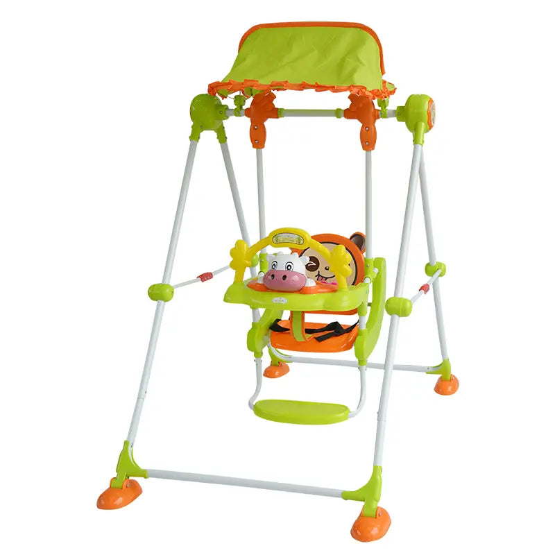 Fabricado com materiais resistentes, com cinto de segurança , assento anatômico e apoio para os pés . A montagem é simples e o uso é indicado para ambientes internos ou externos.