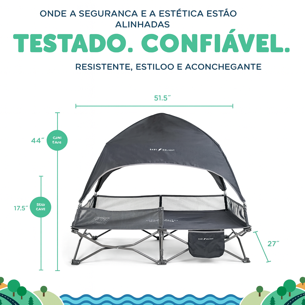 Máxima segurança – estrutura metálica reforçada e paredes de tela respirável.