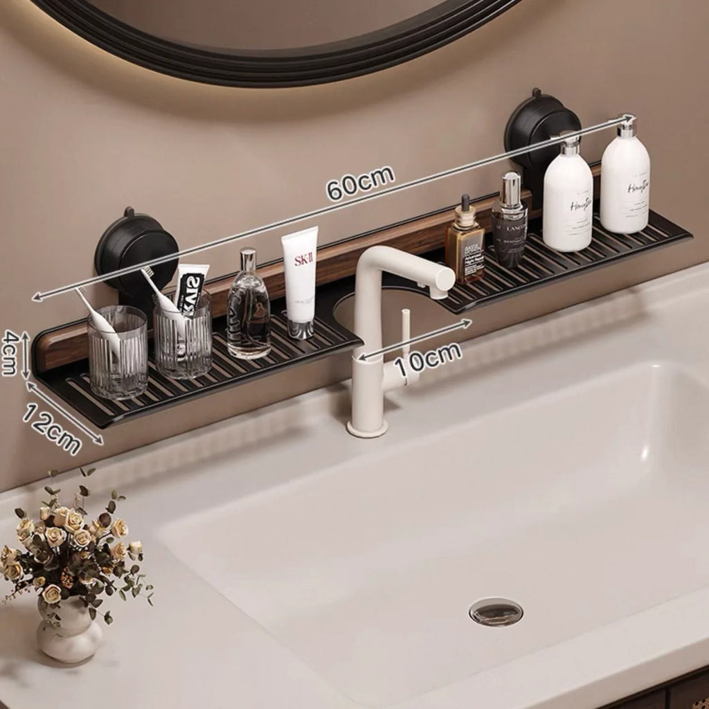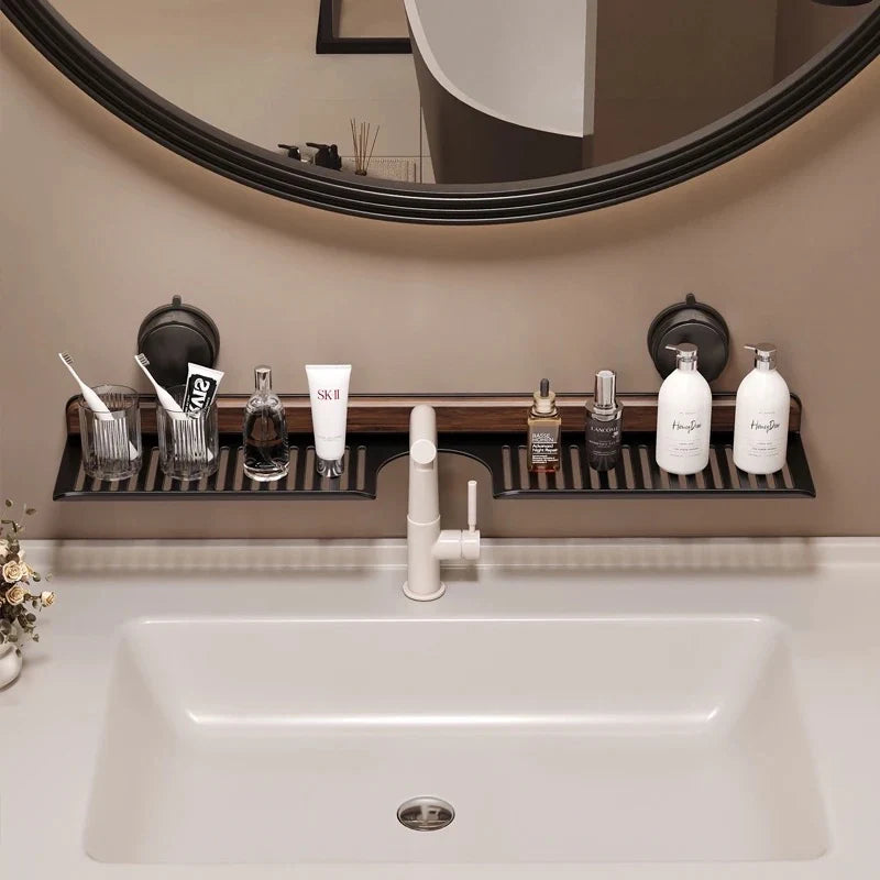 Nosso design com ranhura em U garante compatibilidade com a maioria das torneiras, enquanto o recurso de drenagem oca evita o acúmulo de água. As bordas elevadas adicionam uma camada extra de segurança aos seus itens, tornando a organização fácil e elegante.